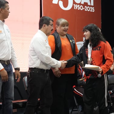 El rector de la Universidad Autónoma de Tamaulipas, Dámaso Anaya Alvarado, hizo entrega del reconocimiento “Correcaminos Orgullo UAT” a estudiantes medallistas nacionales, en un emotivo acto que destacó el desempeño histórico de la casa de estudios en los Campeonatos Nacionales ANUIES 2025, en el que la institución obtuvo 24 preseas (7 oros, 8 platas y 9 bronces), superando ampliamente los resultados de 2024, y todas las marcas mantenidas desde 2006, para consolidarse como referente de élite en el deporte universitario.