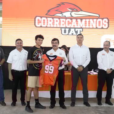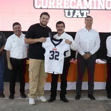 En un acto que reafirma el respaldo de la Universidad Autónoma de Tamaulipas (UAT) al deporte universitario, el rector Dámaso Anaya Alvarado encabezó la entrega de uniformes al equipo Correcaminos que participa en la temporada 2025 de la Liga Mayor de la Organización Nacional Estudiantil de Futbol Americano (ONEFA).