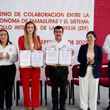 El rector Dámaso Anaya enfatizó que este convenio refleja el compromiso de la UAT de estrechar la colaboración con diversos sectores de la sociedad, con el objetivo de generar mayores oportunidades de aprendizaje para su comunidad estudiantil y, al mismo tiempo, contribuir al bienestar de las familias de la región.